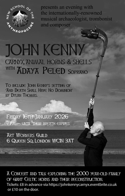 The New School of the Anthropocene is hosting a concert at the Art Workers Guild exploring the 2000 year-old family of giant Celtic horns and their reconstruction.