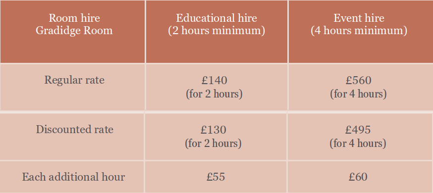 You can download the room hire brochure for October 2025 - September 2026 here