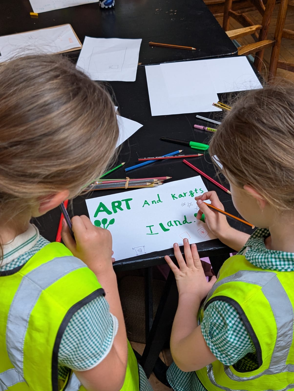The children’s work will be exhibited at the Guild in the Master’s Room from now until the end of September, and the school children made a trip to Guild on Thursday 26 June to see the exhibition and take part in a workshop together.