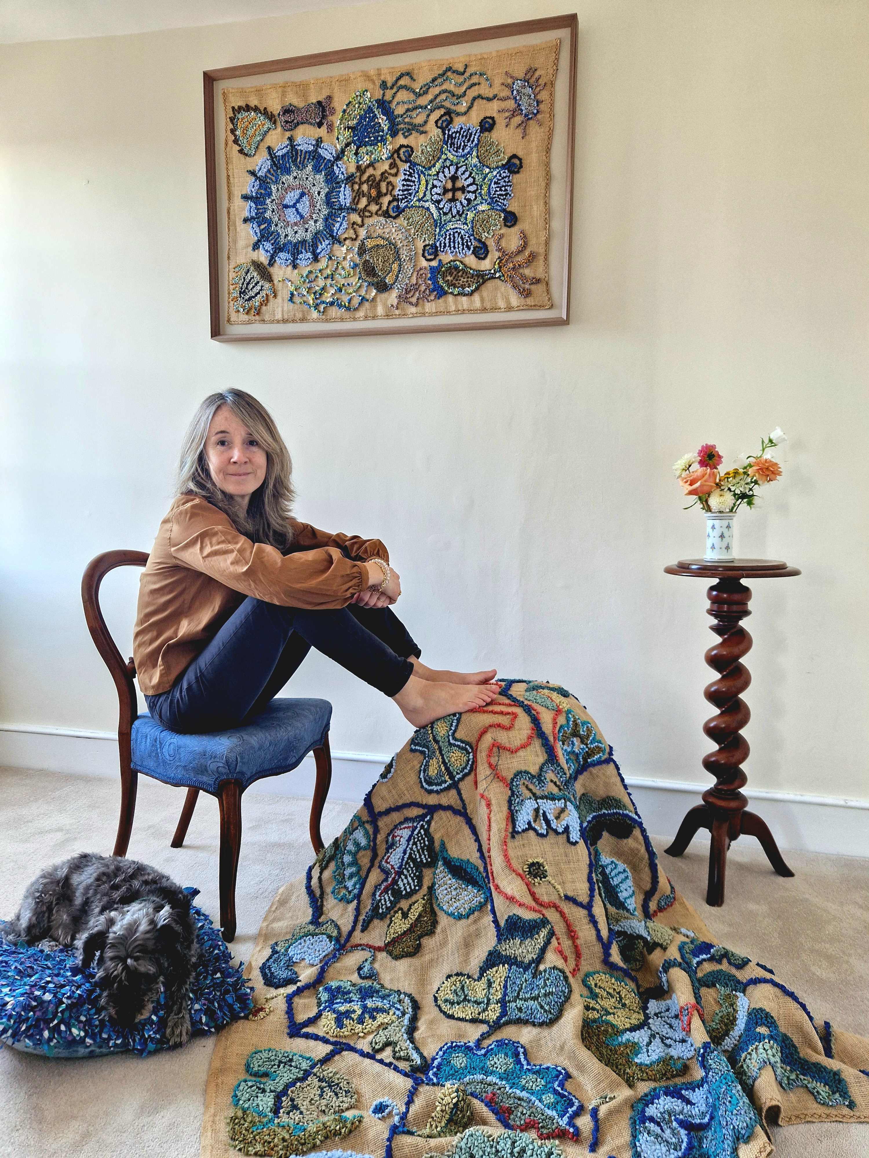 Monica Grose-Hodge will be holding her first exhibition of rag-rugging pieces this winter at the Guild. 25 years after finishing her surface pattern degree, Monica learned the traditional rag-rugging technique during lockdown, inspired by her good friend Rachael Matthews.