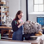 Tessa Eastman is an award-winning British ceramic artist with over twenty years’ experience of working with clay. Her meticulously hand-built sculptures appear curiously alive with movement. While creating she looks for differences such as soft and hard, order and chaos, geometry and irregularity. Tessa says: ’I aim to fix ungraspable states such as fleeting cloud formations, which represent the ideal and the perishable, doom and fantasy’. She draws inspiration from natural phenomena as seen through a microscope, exploring the strangeness of growth where systems flow and digress.