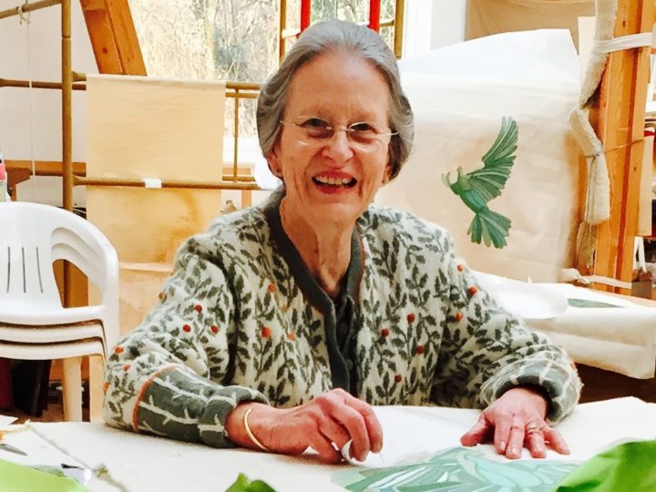 Diana Springall is a designer/maker of wall panels, hangings, pictures, carpets, screens, altar frontals and greeting cards. She works mainly to commission and in all types of cloth and yarn. Her individuality of design stems from a fine art training in drawing and painting. Her subject matter spans the figurative, descriptive and representational to the abstract and conceptual. Diana was Chairman of The Embroiderers Guild 1978-1985, Chairman of The Society of Designer Craftsman 1987-1990 and is a Liveryman of the Worshipful Company of Broderers.