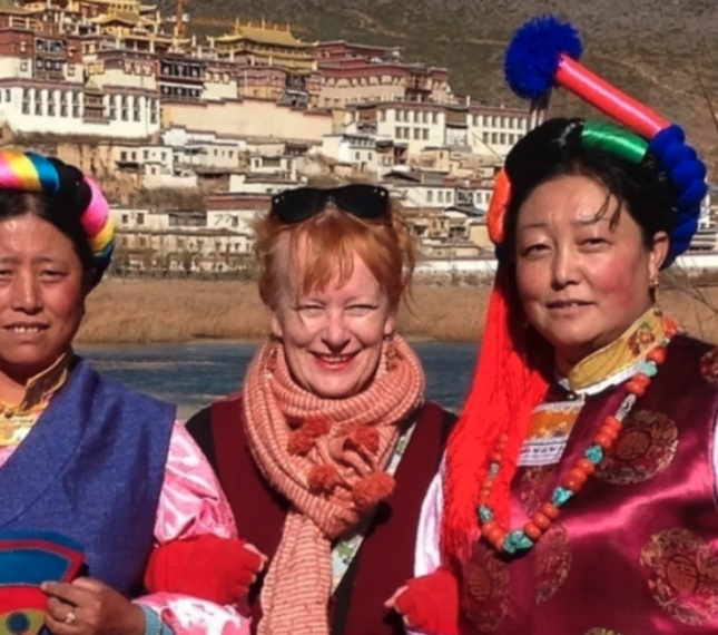 Susie Vickery is an artist specialising in embroidery and textiles, with over twenty years’ experience as a theatre and film costumier. Alongside her fine art practice, she has worked extensively on women’s development projects across Asia, including Nepal, Tibet, India and China. She has contributed to Wellcome Trust–funded art and health projects in Mumbai and rural Mexico. These experiences inform her embroidered works, which explore identity, gender, iconography and Asian art traditions.