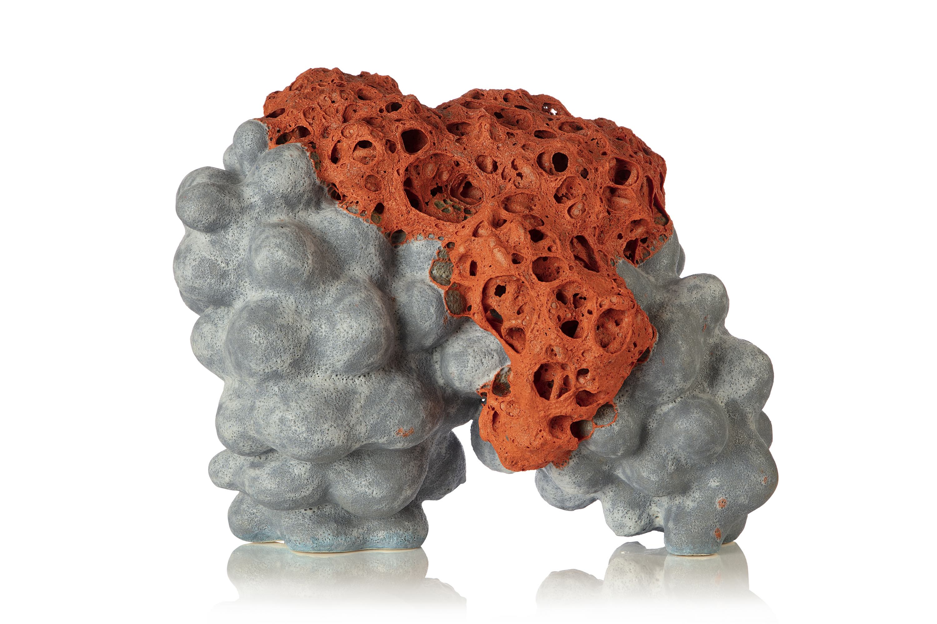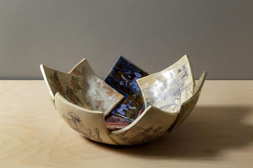 Carol McNicoll is one of a group of female artists who transformed the British ceramics scene in the 1970s. Her animated ceramic works and composite sculptures use inventive modelling and moulding techniques, transfers and found objects. Prior to this, she worked as a machinist for the fashion designer Zandra Rhodes and designed and made stage costumes for Roxy Music.